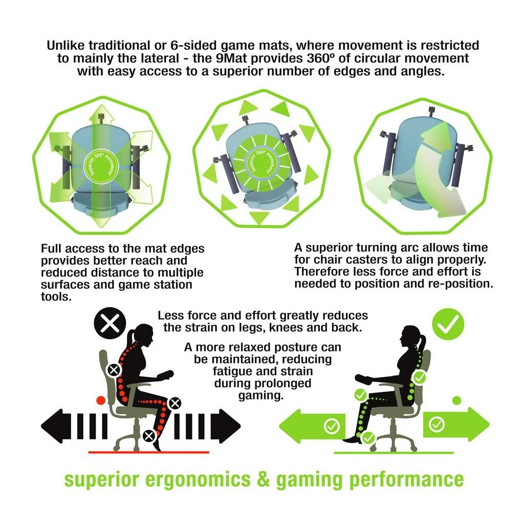 Cleartex 9Mat is suitable for compact desk areas. Its unique nine-sided shape provides excellent floor coverage and protection. The 9Mat has an easy-glide surface for smooth chair movement which may help reduce leg fatigue. This mat is made from strong polycarbonate which will not crack, dent, discolor, curl or smell. Perfect for a child’s room or small office, this chair mat is recyclable, environmentally safe, free from PVC and toxic chemicals. Polycarbonate 9 sided chair mat to protect floors from wear and provide an ergonomic easy glide surface. These mats are available for both carpeted and hard floors.