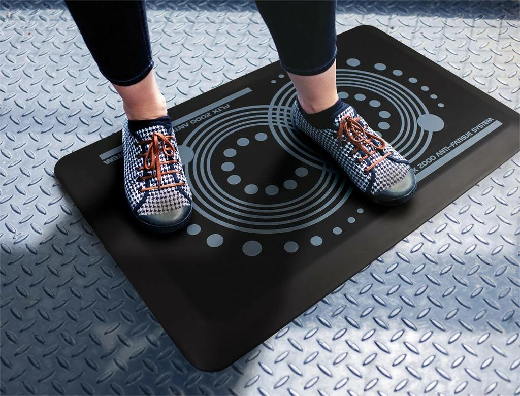 AFS-TEX 2000 Active Anti-Fatigue mats are designed to provide the ultimate standing surfaces combining prolonged comfort and effective body support. The AFS-TEX 2000 incorporates a design to encourage the changes in standing positions. Regular movement stimulates blood flow, increase the body’s metabolism and helps with further fatigue relief. Effective 24/7 for the life of the product. Non-toxic and phthalate free. Ideal for office or home use.