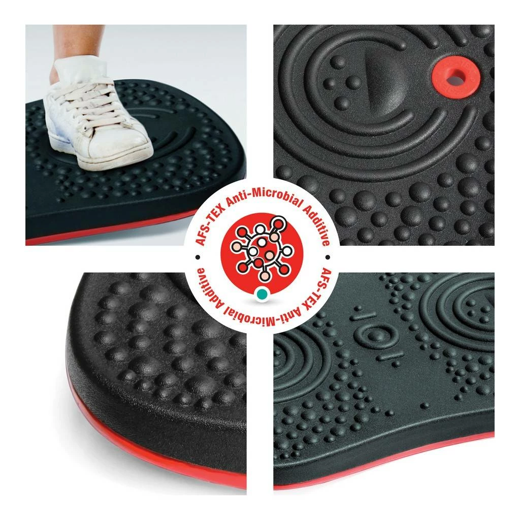 AFS-TEX Active Balance Boards are the perfect ergonomic companion to standing desks. Stimulates gentle and controlled movement to exercise and strengthen the body core. Anti-Microbial anti-fatigue standing surface for improved comfort and hygiene. Improves posture, core strength and joint mobility for on-going wellbeing. Enhances concentration and productivity in your home or office. 20″ x 14″. 2 Year Limited Warranty