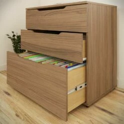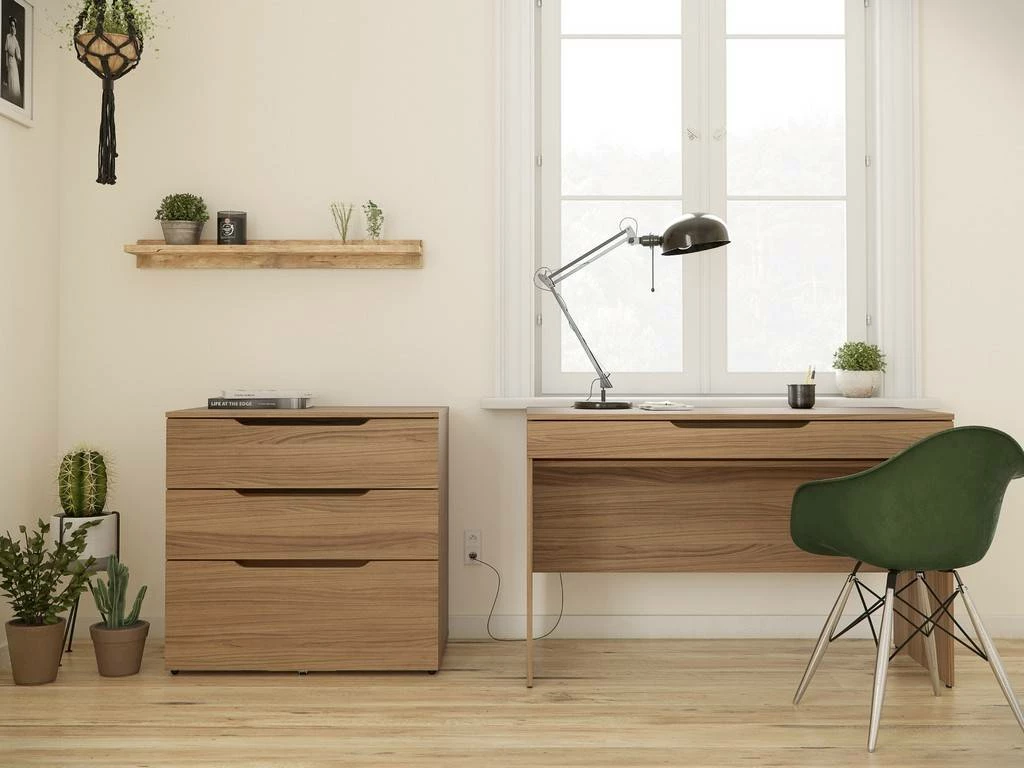 Arobas 3-Drawer Filing Cabinet from Nexera adds generous storage capacity to your home office setting. It features 2 drawers on solid metal slides and 1 large filing drawer on full extension ball bearing slides at the bottom. This filing cabinet is equipped with anti-tilt safety device and accommodates both legal and letter file sizes. Arobas Collection from Nexera is characterized by its unique modern design, multiple smart features and offers flexible settings for your home office workspace.