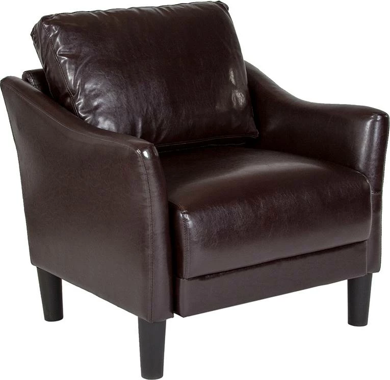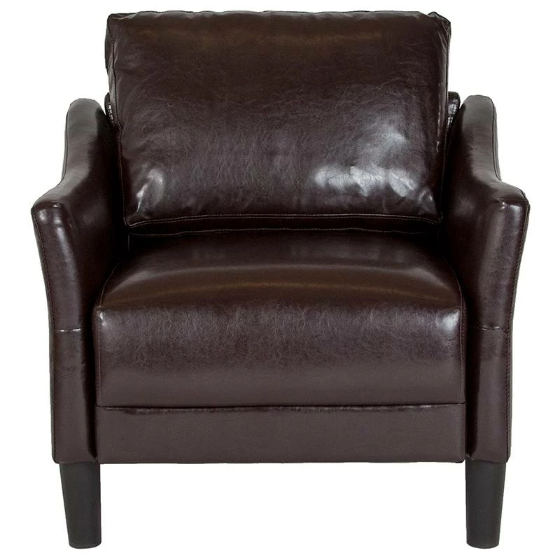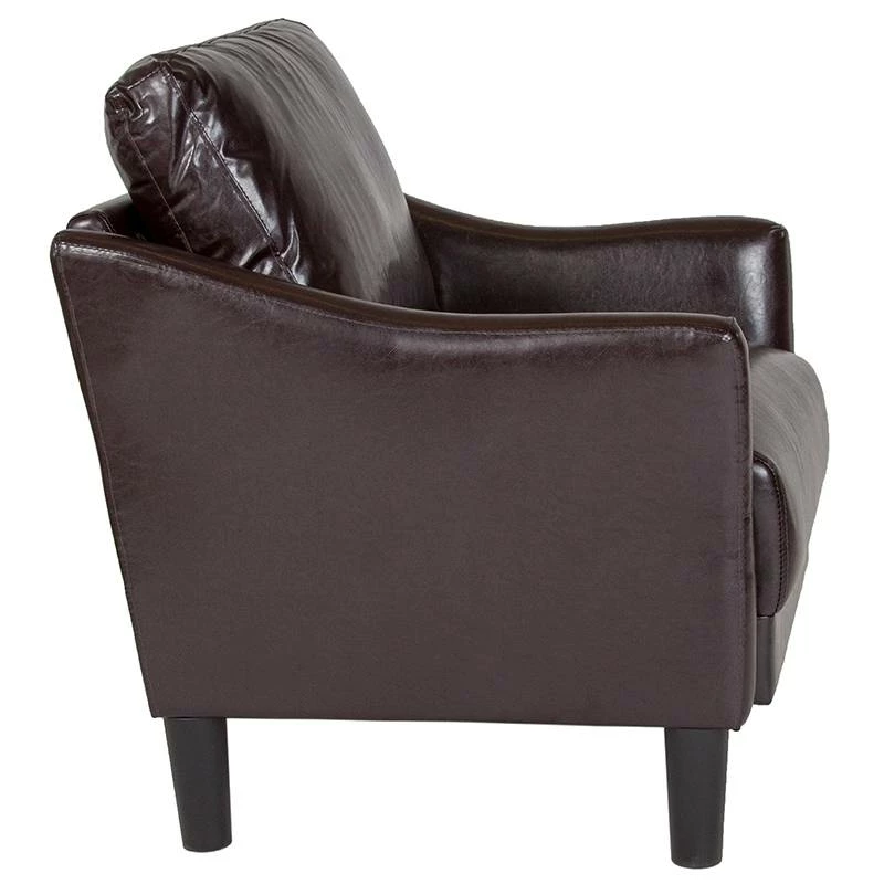 Make your home an inviting space for entertaining or formal gatherings on this stylish single seat arm chair.This arm chair has simple details that are so attractively put together. High legged furniture commands attention. High legs not only enhance the look, but is beneficial whether you sweep or vacuum. The uniform seats will keep your in pristine order. Back cushions are removable for cleaning and have a hook and loop system to keep cushions in place.For your library or den, having two chairs makes an easy conversational setting. Whether you use in your home library or living room, the plush cushions and slanted arms will have you cozied up. [SL-SF915-1-BRN-GG]