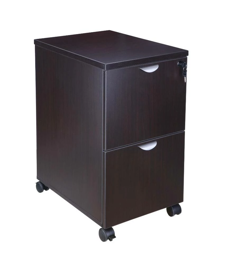 The mobile pedestal has two file drawer for extra filing space and portability. The Mocha laminate is attractive and compliments the groupings other pieces. It is not intended for use beneath a work surface.
