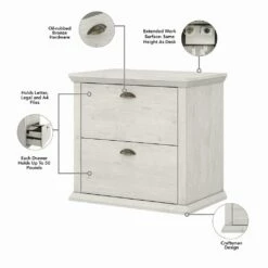 The Bush Furniture Yorktown 2 Drawer Lateral File Cabinet presents a stylish and practical solution for organizing documents in any work or living space. Two file drawers open on smooth full-extension ball bearing slides for an effortless reach to letter, legal and A4-size paperwork. The drawers are designed to extend one at a time for maximum stability on both hard and carpeted surfaces, and each drawer holds up to 50 pounds of materials. The 2 Drawer File Cabinet’s height matches that of the Yorktown L Shaped Desk, Corner Desk and Home Office Desk to create an extended work surface when positioned side by side. Yorktown’s quality craftsmanship is highlighted by stylish beveled edge detailing and oil-rubbed Bronze drawer pulls that complement your choice of four attractive finishes: Antique Cherry, Linen White Oak, Reclaimed Pine and Restored Gray. This 2 drawer lateral filing cabinet is tested to meet ANSI/SOHO quality standards for safety and performance and is backed by the Bush Furniture 1 Year Manufacturer’s Warranty. See the full collection for coordinating items available and enjoy Yorktown’s time-worn classic charm anywhere in your home.