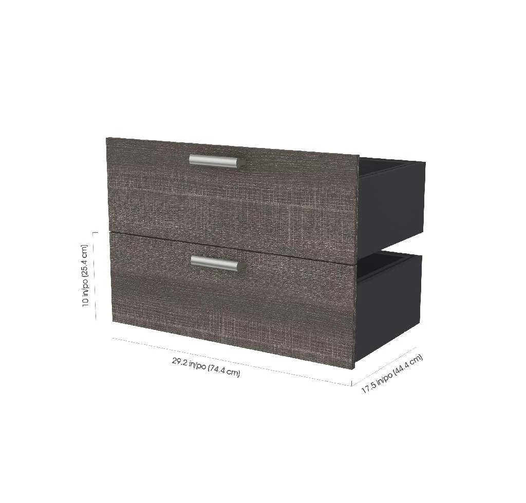 The Cielo Collection offers contemporary luxury with its striking two tone finish and crisp, refreshing design. This practical two drawer set can be added to all of our Cielo 29.5″ modular storage units providing you with unique configuration possibilities and can be easily moved from one storage unit to the other, even after installation. Each drawer slides out on smooth, full extension ball bearing slides and is beautifully finished with metal handles. Assembly required. Easy to Assemble.
