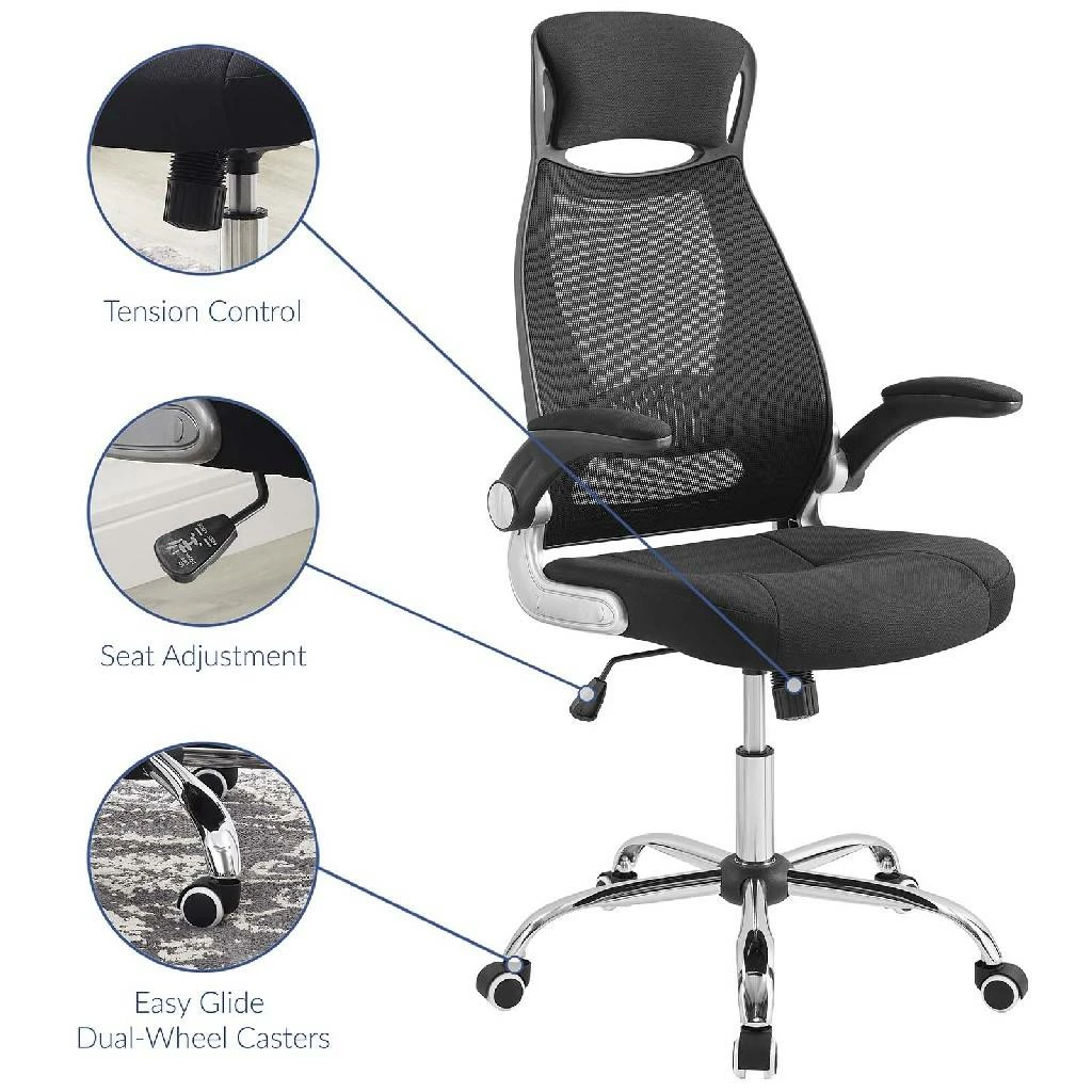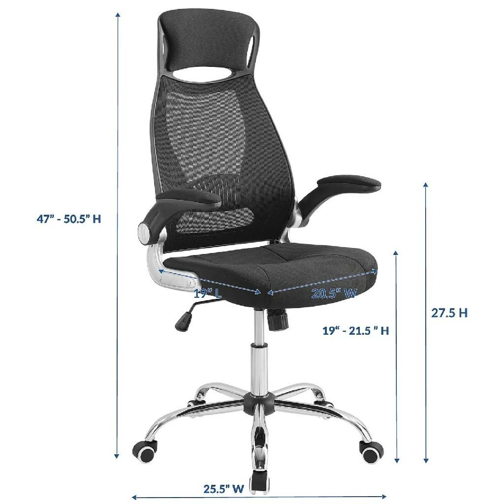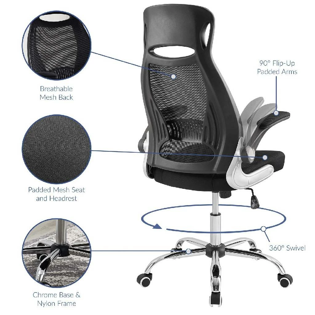 Exhibit command potential with the Expedite Highback Office Chair. Expedite’s breathable mesh back is ergonomically designed to assist back and shoulder posture, while the lower portion provides excellent lumbar support. A padded mesh headrest completes the managerial look of this executive office chair, while padded flip-arms add to the versatility. Complete with a densely padded mesh seat, 360-degree swivel, one-touch pneumatic height adjustment, a tilt-tension control knob, and five hooded dual-wheel nylon casters on a chrome plated aluminum base, glide comfortably over carpeted floors while staying ready for the tasks at hand. Set Includes One – Expedite Highback Office Chair