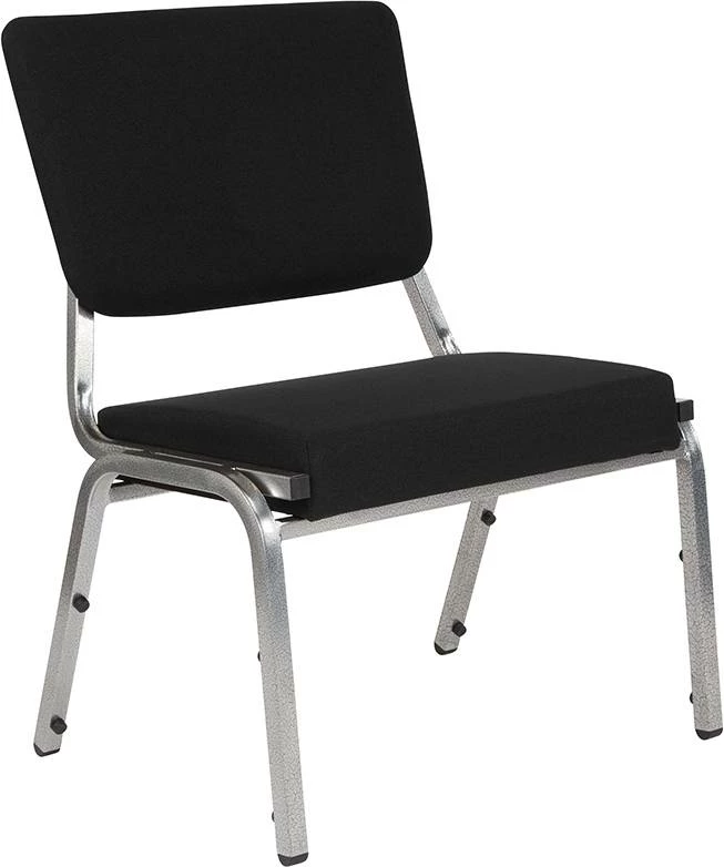 This armless stack chair is the ideal choice to fit into your reception area to accommodate all users.The antimicrobial upholstery is the premier solution for heavily used areas. The good-looking 3/4 open panel back will define your space. The extra wide seat is 21.5″ and has a 2.5″ thick cushion. Chair is constructed with a sturdy 18 gauge tubular frame that can hold up to 1500 lbs. Bumper guards will prevent the finish on the frame from being scratched while stacked while stacking up to 10 chairs.This commercial grade bariatric side chair not only meet the needs in the reception and hospitality industry, but will also make a great addition in your home for additional seating for guests. [XU-DG–BK-GG]