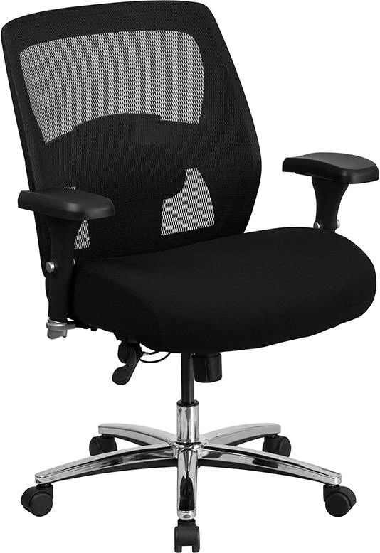 This chair was designed to meet your around the clock needs. Also known as multi-shift task chairs, a 24-hour office chair is designed for extended use or multiple-shift environments. This chair can be used in a 9-5 setting, but it was specifically designed to meet the needs of workers in 911 dispatch offices, nurses’ stations, call centers, control room engineers, disc jockeys, and government personnel. The big and tall design also aids in accommodating larger and taller body types. This chair has been tested to hold a capacity of up to 500 lbs., offering a broader seat and back width. The chair offers support to the mid-to-upper back region. Mesh office chairs can keep you more productive throughout your workday with its comfort and ventilated design. This chair features built-in lumbar support and a molded foam seat that dissipates pressure points for greater comfort. The waterfall front seat edge removes pressure from the lower legs and improves circulation. The tilt lock mechanism offers a comfortable rocking/reclining motion. The free rein motion is great for taking a quick break from typing to answer phone calls and relax. Chair easily swivels 360 degrees to get the maximum use of your workspace without strain. The pneumatic adjustment on this chair offers a very smooth adjustment range to achieve your desired height. The adjustable armrests take the pressure off the shoulders and the neck, which minimizes the risk of pain. The heavy duty chrome base is constructed to keep up with the demands of an intensive use chair.