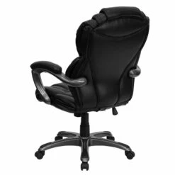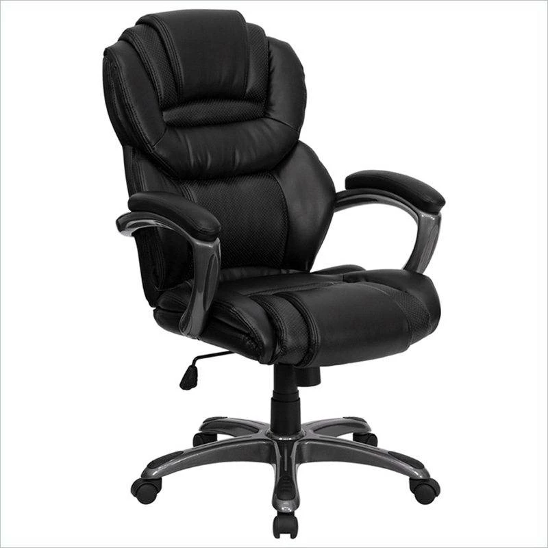 This popular contemporary high back office chair features soft black leather upholstery, an overstuffed seat, back and arms, and contemporary ergonomic styling to provide an unmatched sitting experience. Chair features a titanium nylon base with black caps that prevent feet from slipping. For your next office chair, look no further than this comfortable and very stylish leather office chair!