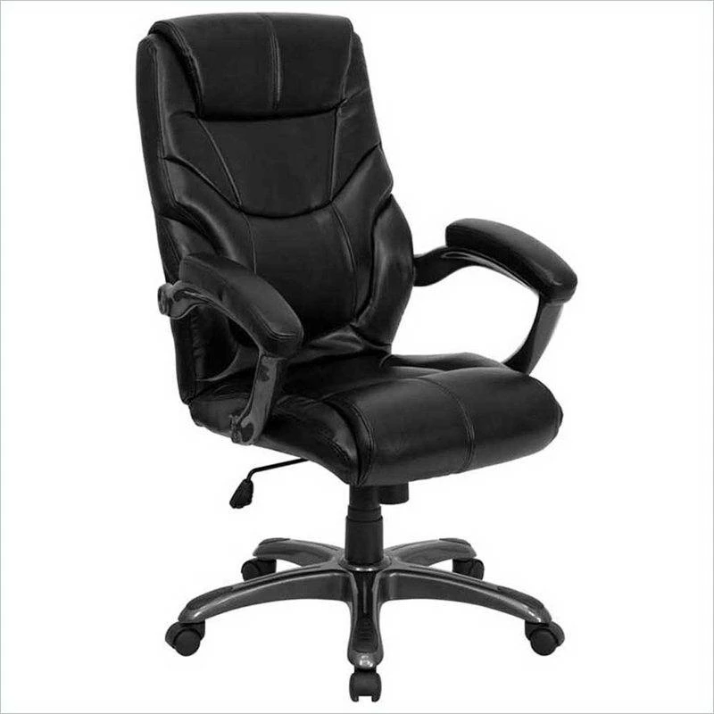 Whether you’re looking for an office chair that is functional, or one that is comfortable, or a chair that just looks great, this Black Leather Executive Office Chair from Flash Furniture will complete all needs. Consisting of a well-padded seat and back along with a standard spring tilt mechanism, padded loop arms and black leather upholstery, this leather office chair will be a fine addition to any office setting.
