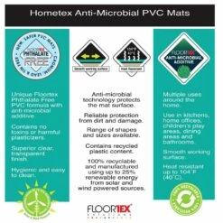 Floortex’s Anti-Microbial Hometex Biosafe pads have antimicrobial properties built in to protect the products from microbial deterioration. The antimicrobial properties also help reduce microbe build up on the mats surface making it more hygienic. Free from the phthalates that have been banned from children’s toys and medical instruments, making our PVC mats even safer to use. Produced using 25% renewable energy and contains up to 25% recycled content. Suitable for a wide range of uses. Tested in accordance with the international ISO22196 standard.