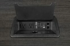 Make presentations memorable with Legacy’s Conference collection! Legacy’s patented modular conference tables grow with the size of your team. Measuring 22 feet long, this racetrack style table seats 20-22 people and is finished in an stylish Ash Grey laminate. Adjustable glides on the bottom of the base keep the tabletop level and are easy to adjust. Three Power and Data Ports makes tabletop connectivity easy. Each Power/Data port includes (2) USB 2.0 ports, (2) USB charging ports, (2) AC 125V 60Hz outlets, (1) front/rear ethernet port, (1) front/rear phone port and has a black cover plate for a neat, clean look. The Legacy collection is constructed of a 1-inch thick thermal fused melamine laminate with a 3-millimeter commercial grade matching PVC edge. Laminates are scratch, stain and scald resistant. Legacy casegoods are backed by a 10-year limited manufacturer’s warranty.