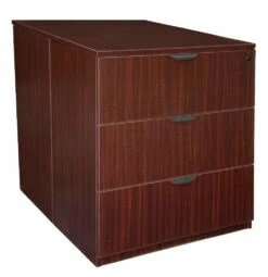 Sit or stand in the comfort of Legacy Stand Up modular workstations- perfect for a mailroom, break area or any collaborative environment. Fast paced environments beg for productivity and with standing storage units, everything is within arms’ length. Stand up group stations offer a large surface perfect for blueprints for common work space. This Stand Up set includes two Stand Up Lateral Files placed back-to-back. Each Lateral File includes three large locking full suspension file drawers that accept both letter and legal filing. Finished in a classic Mahogany laminate, Stand Up components coordinate with other Legacy furniture which makes customizing easy. The Legacy collection is constructed of a 1-inch thick thermal fused melamine laminate with a 3-millimeter commercial grade matching PVC edge. Laminates are scratch, stain and scald resistant. Legacy casegoods are backed by a 10-year limited manufacturer’s warranty.