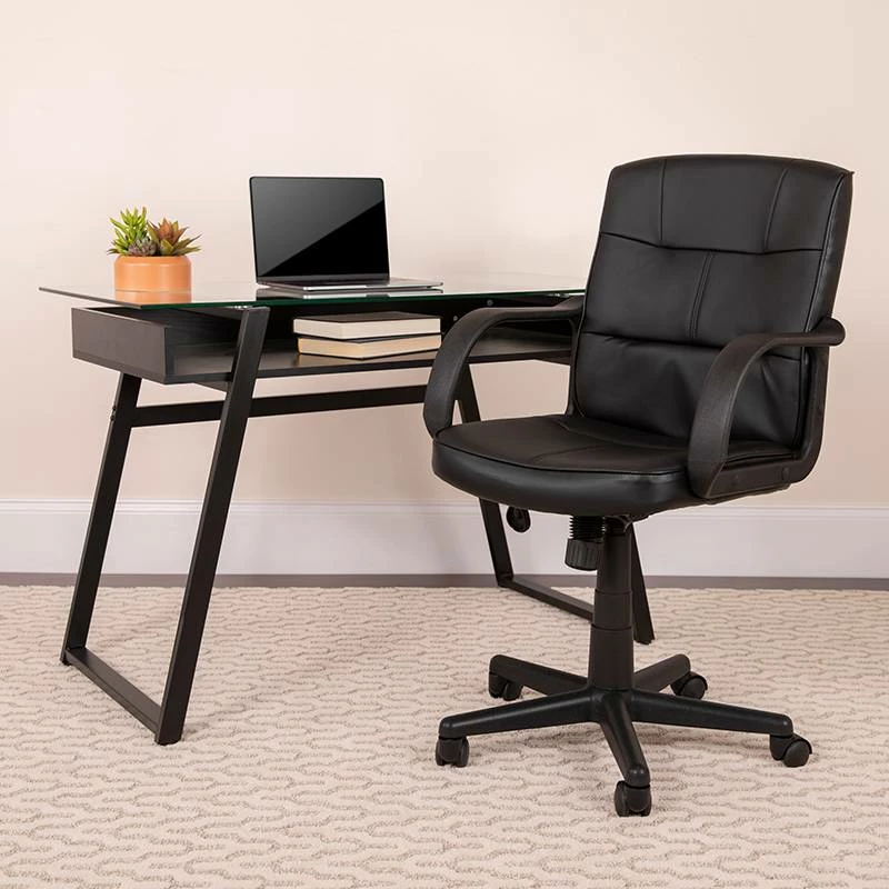 Affordable leather computer chair will provide you with the comfort needed for browsing the internet. The mid-back design makes it a perfect desk chair especially for smaller work spaces, but still doesn’t compromise on its appeal and features.