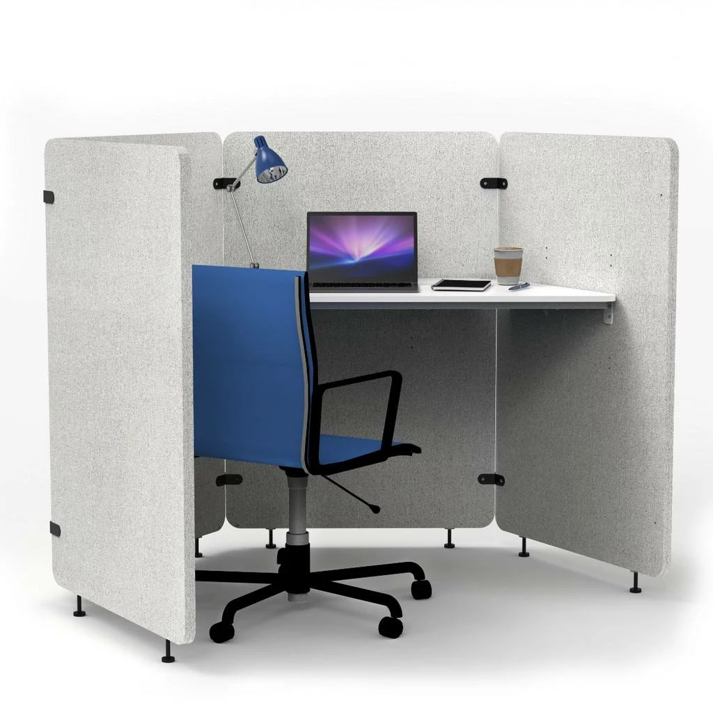 Surveys suggest most employees are ready to return to the office at least a few days each week. And when they arrive they expect comfortable private distraction-free workspaces they can call their own.But how can budget-conscious employers provide inviting environments that are both cost-effective and easy to install?That’s where Luxor’s Acoustic Work Pods enter the scene.Using the same proven materials as our top-selling RECLAIM line of sound dampening room and desk dividers these freestanding office pods mitigate noise and visual distractions to create appealing spaces forheads down task-focused work.Constructed from post-consumer recycled materials RECLAIM eco-friendly office partitions are lightweight simple to assemble and low-cost making them the perfect office booth and privacy desk for todays hybrid work environments. And best of all they are available in 3-panel 4-panel and 5-panel kits that include the necessary connection brackets to create clusters of cubicle pods.Additional