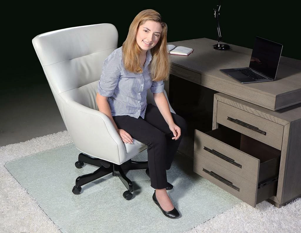 Add style and functionality to your workspace with the addition of an innovative InvisiMat chair mat. Crafted of thick tempered glass, its high-tech construction is virtually unbreakable and can withstand thousands of pounds of pressure. A beveled edge makes it easy to roll on and off while its crystal-clear design is nearly invisible. This modern office accessory is a must-have for desks anywhere in the home and works with all floor types including hardwoods and carpet. It’s truly the last chair mat you’ll ever need.