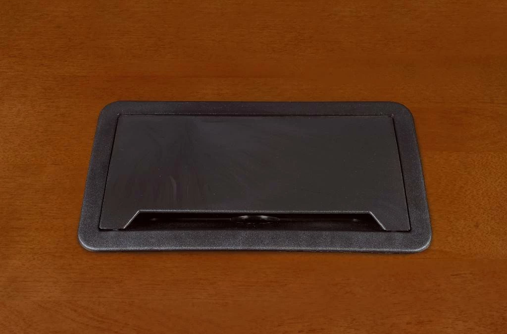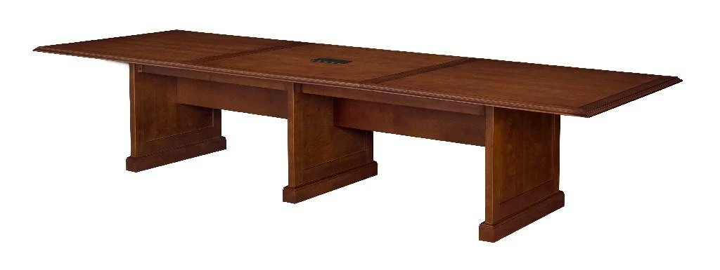 Outfit your executive or home suite with a tradition that lasts. Regency’s Prestige Collection combines the quintessential elements of traditional elegance with classic lines, solid wood trim, beveled edge details and rich hand-rubbed Cherry veneer finishes. Tasteful, two-tone inlaid edge detailing and alternating wood grains set these tables apart. Prestige’s patented modular conference tables grow with the size of your team. Measuring 12 feet long, this luxurious table seats ten to twelve people. A Power and Data Port makes tabletop connectivity easy. The Power/Data port includes (2) USB 2.0 ports, (2) USB charging ports, (2) AC 125V 60Hz outlets, (1) front/rear ethernet port, (1) front/rear phone port and has a black cover plate for a neat, clean look.