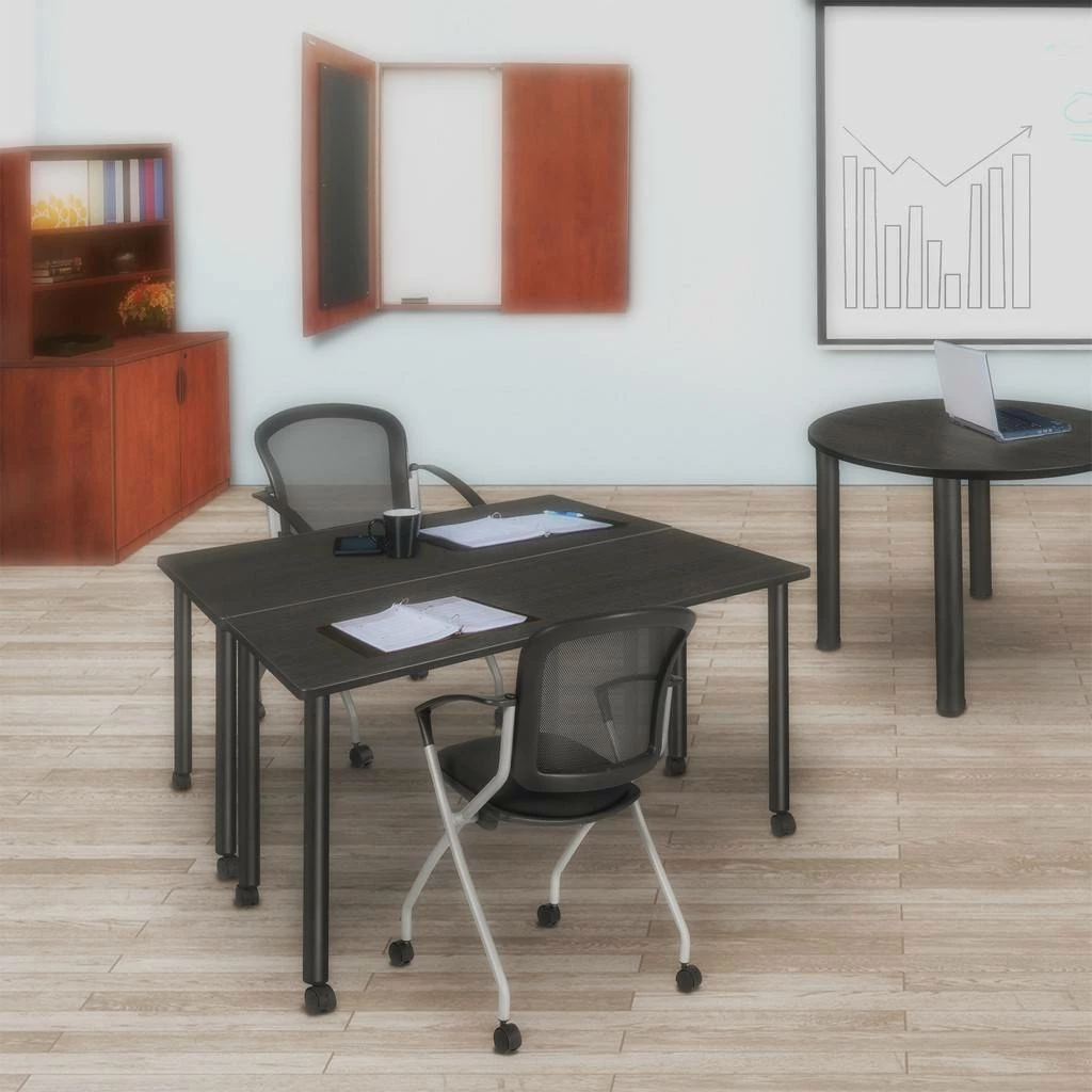 Give everyone more room with Kee tables. Kee Mobile post legs come four to a set and include locking casters, which makes moving the whole table easy. This 42 x 24-inch table assembles in a snap with just a few screws. The table is constructed of a thermal fused melamine laminate tabletop that is 1-inch thick and finished with a black T-Mold edge band. This Ash Grey tabletop is double-sided and finished in White on the other side. Simply pick the side you like and install the base on the other. Self tapping wood screws and a placement template are included. Laminates are scratch, stain and scald resistant and wipe clean easily. Rounded corners make the table safer for everyone. A sleek alternative to pedestal style bases, this set of post legs comes in a classic black to match any . The legs are constructed of tubular steel with locking hard plastic casters on the bottom of each leg. Kee tables are backed by a 10-year limited manufacturer’s warranty.