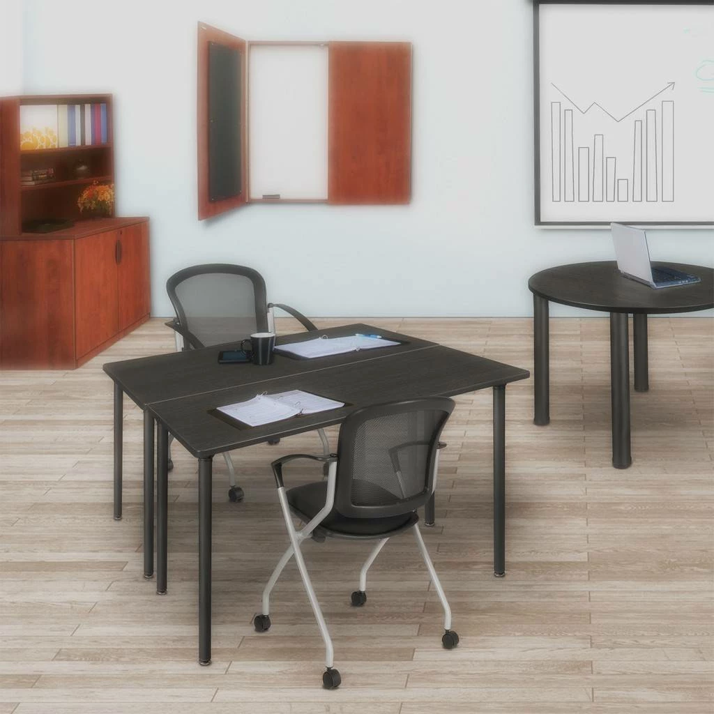 Turn any table into a folding table with Kee Folding Post Legs! Kee Folding post legs come four to a set and can collapse while attached to a tabletop. Simply twist the leg to unlock, fold down and twist in the opposite direction to lock back into place. This 42 x 24-inch table assembles in a snap with just a few screws. The table is constructed of a thermal fused melamine laminate tabletop that is 1-inch thick and finished with a black T-Mold edge band. This White tabletop is double-sided and finished in Ash Grey on the other side. Simply pick the side you like and install the base on the other. Self tapping wood screws and a placement template are included. Laminates are scratch, stain and scald resistant and wipe clean easily. Rounded corners make the table safer for everyone. A sleek alternative to pedestal style bases, this set of post legs comes in a classic black to match any . The legs are constructed of tubular steel with leveling glides on the bottom of each leg. Kee tables are backed by a 10-year limited manufacturer’s warranty.