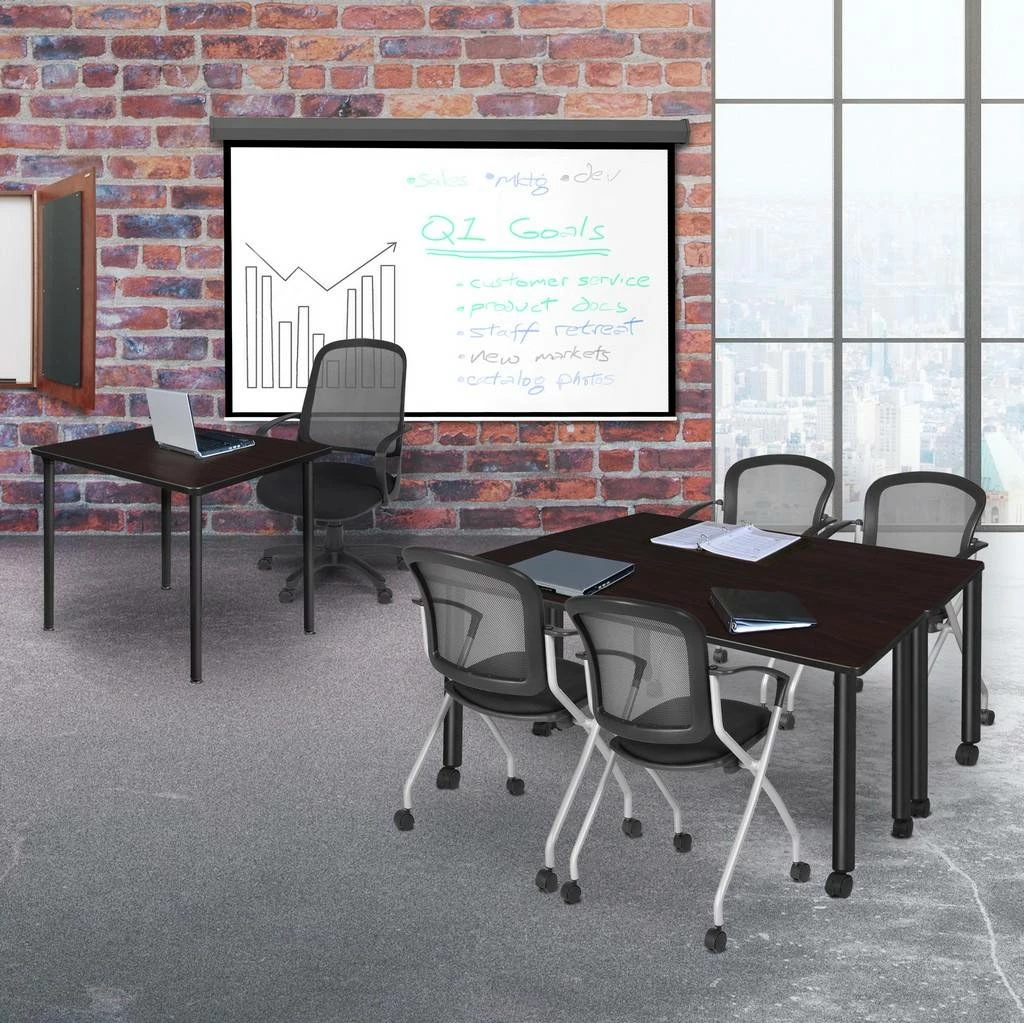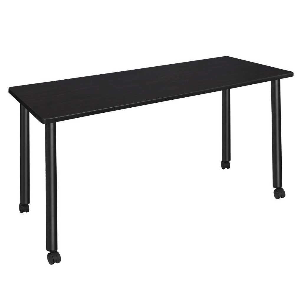 Give everyone more room with Kee tables. Kee Mobile post legs come four to a set and include locking casters, which makes moving the whole table easy. This 72 x 24-inch table assembles in a snap with just a few screws. The table is constructed of a thermal fused melamine laminate tabletop that is 1-inch thick and finished with a black T-Mold edge band. This Mahogany tabletop is double-sided and finished in Mocha Walnut on the other side. Simply pick the side you like and install the base on the other. Self tapping wood screws and a placement template are included. Laminates are scratch, stain and scald resistant and wipe clean easily. Rounded corners make the table safer for everyone. A sleek alternative to pedestal style bases, this set of post legs comes in a classic black to match any . The legs are constructed of tubular steel with locking hard plastic casters on the bottom of each leg. Kee tables are backed by a 10-year limited manufacturer’s warranty.