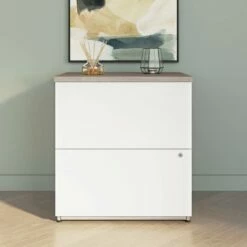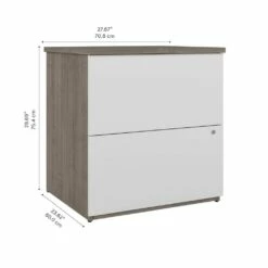 The Bestar Ridgeley 2 Drawer Lateral File Cabinet is the perfect paperwork storage solution for any office. This file cabinet allows you to keep your various files, documents, and office supplies organized and in order. The large file cabinet is designed with our Tip Guard™ safety features, which include a stable design, a counterweighted back panel, a wall anchor, and Open-Safe Drawers. Thanks to its fully finished back panel, the lateral filing cabinet can be placed anywhere in your office. Use the durable melamine surface as an additional storage spot for a printer. Each drawer opens on smooth full-extension ball-bearing slides for an effortless open and close. The drawers are designed to accommodate files of various sizes for your convenience. A lock secures both drawers to protect sensitive information. Add some style and personality to your office by displaying decorative items, plants, and pictures on top of the cabinet. The lateral filing cabinet’s classic design allows it to blend easily into any existing office style. This storage solution is tested to meet ANSI/BIFMA quality standards for safety and performance. This 2 Drawer Lateral File Cabinet is backed by the Bestar 2 Year Manufacturer’s Warranty. See the full Ridgeley Collection to create your ideal office space with a desk, bookcase, and more (coordinating items sold separately).