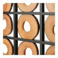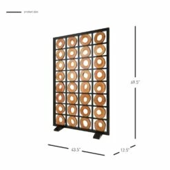 Double the Function as Art + Room Divider, distinct Mahogany wood rings pieces placed on 32 grids to create a remarkable room divider. The main frame is also constructed of solid mahogany wood. Set it to divide a small or large spaces into two areas, such as a separate living and dining space. Easy Assembly. Available in Natural.