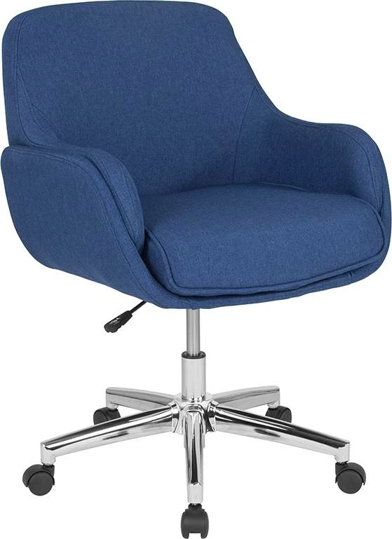 Are you ready for an exciting office chair? Work in comfort and style with a swivel office chair boosting a 4″ thick molded seat. The mid-back chair is ideal to support the mid to upper back region. Turn the tilt tension adjustment knob to increase or decrease the amount of force needed to rock or recline. Lock the seat in place with the tilt lock mechanism. Raise and lower your seat height using the pneumatic seat height adjustment lever, conveniently located under the seat. The 360 degree swivel function allow you to maximize your immediate workspace. Dual-wheel casters allow you to glide from one task to the next. Advance your office furnishings that will make an impact on your comfort and design. [BT-1172-BLU-F-GG]