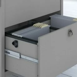 Keep your home office organized with a storage solution that’s as beautiful as it is functional. The Bush Furniture Salinas 2 Drawer Lateral File Cabinet creates a casual feel in your home office with decorative wood details, tapered legs and curved base rails inspired by Mission styling. Two file drawers accept legal and letter size documents and open on smooth full-extension ball bearing slides so you’ll have no trouble reaching papers all the way in the back. The File Cabinet’s height matches that of the Salinas 60W L Shaped Desk with Storage (sold separately) for the option of creating a coordinated look in your personal workspace. Available in your choice of attractive Antique White, Cape Cod Gray and Vintage Black finishes with alluring Tumbled Pewter drawer pulls, the country charm of this file organizer looks great wherever you call home. The 2 drawer lateral filing cabinet is tested to meet ANSI/SOHO quality standards for safety and performance and is backed by the Bush Furniture 1 Year Manufacturer’s Warranty. Complete your space with coordinating items from the Salinas Collection.