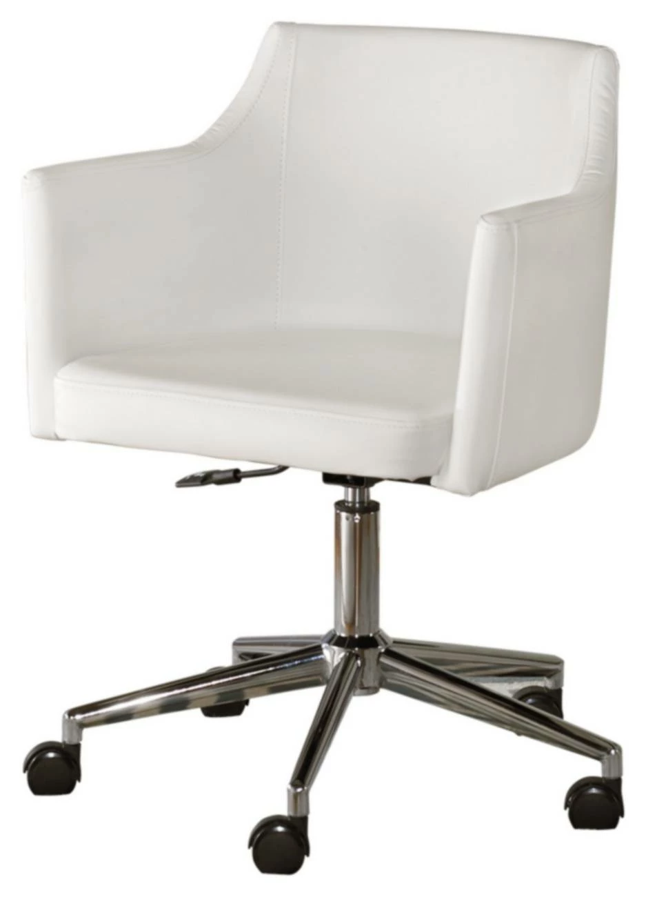Baraga swivel desk chair delivers the comfort you crave with the modern style that suits your taste. Sleek, linear design and faux leather maximize a minimalist look. Casters, adjustable seat and 360-degree swivel make this functional piece all the more flexible.