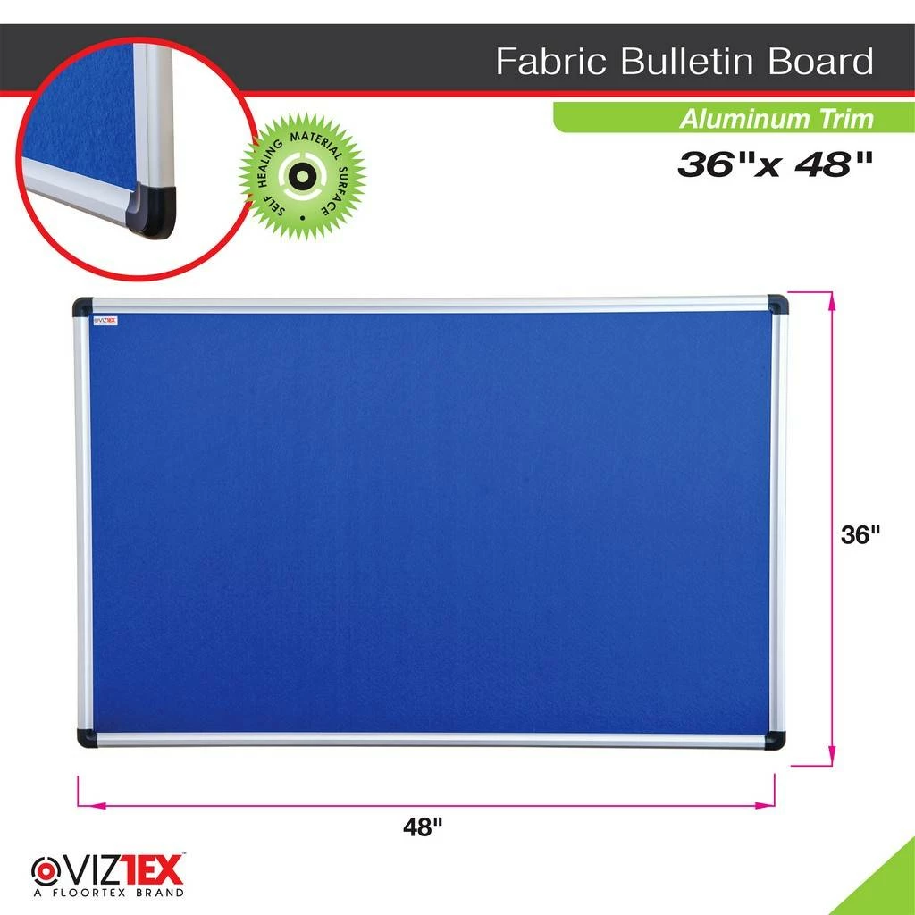 Floortex’s Viztex Bulletin Boards are a durable self-healing material for maximum durability. Attractive fabric bulletin board with aluminium effect surround. Vertical or horizontal mounting options, full mounting kit and instructions included. Sturdy zinc backing for a high quality finish and maximum stability. Excellent quality for exceptional value. Accessories Not Included.
