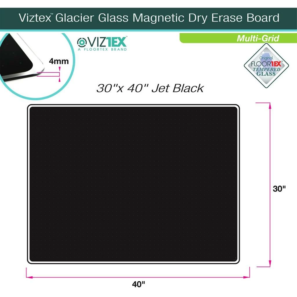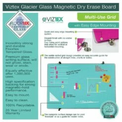 Premium magnetic glass dry erase boards combine style and functionality with high performance. The printed design includes a list / index area and multi-use grid section. The grid area is designed to help with drawing of planning tables and charts whilst also working as a guide for neat and even writing of notes and lists. The magnetic backing allows the attaching of additional documents and notices. Ideal for use in the home or office. Suitable for use with all non-metallic dry erase pens and markers. High specification magnetic backing designed for use with rare earth magnets (Not included). Colors combinations available are polar white/black, light teal/black and soft violet/black.