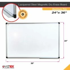 Floortex Viztex Lacquered Steel Magnetic Dry Erase whiteboard with aluminium frame, is a ceramic white writing surface provides superior color contrast and easy erase ability. The magnetic surface will not scratch, stain or ghost under normal use, but enables notices, bulletins and documents to be stuck to the board. Complete with 12” easy mount marker tray and full mounting kit with instructions and vertical or horizontal mounting options included. The magnetic surface provides a dual purpose writing and document mounting board. Perfect for use in the office, classroom or corridor. Excellent quality and exceptional value.