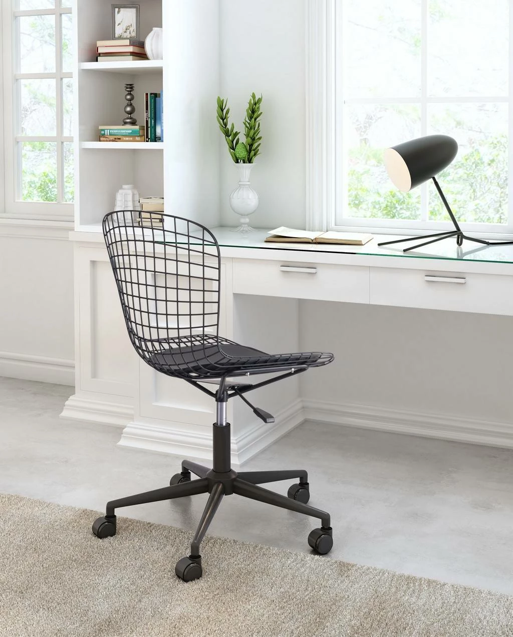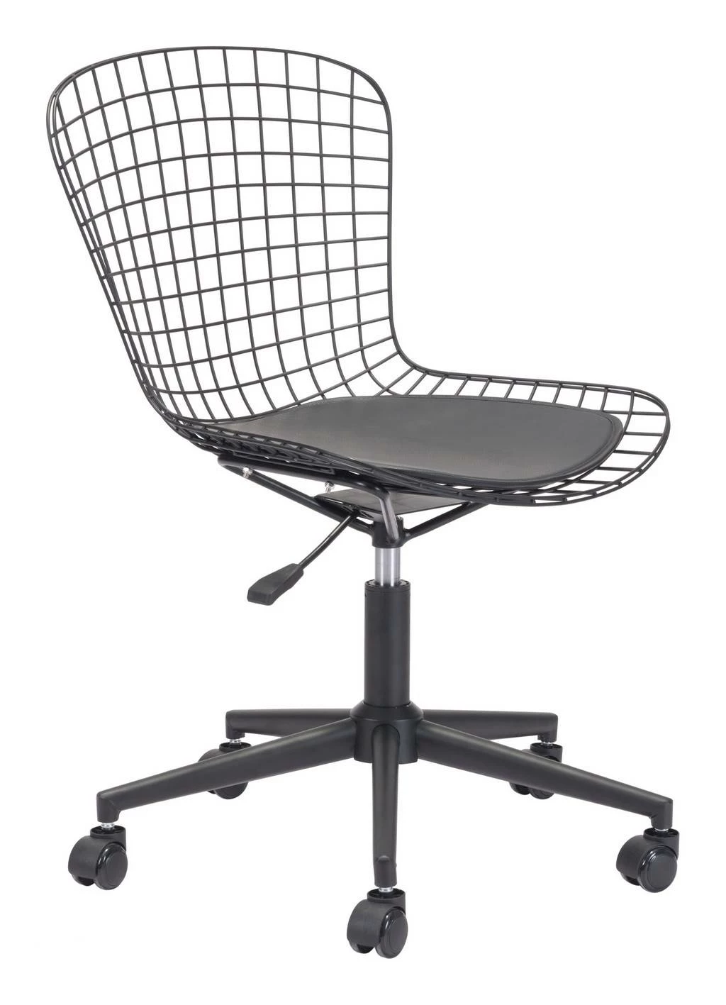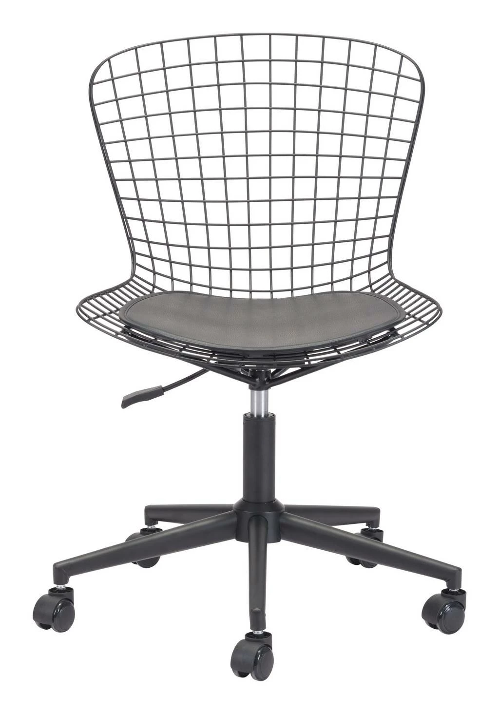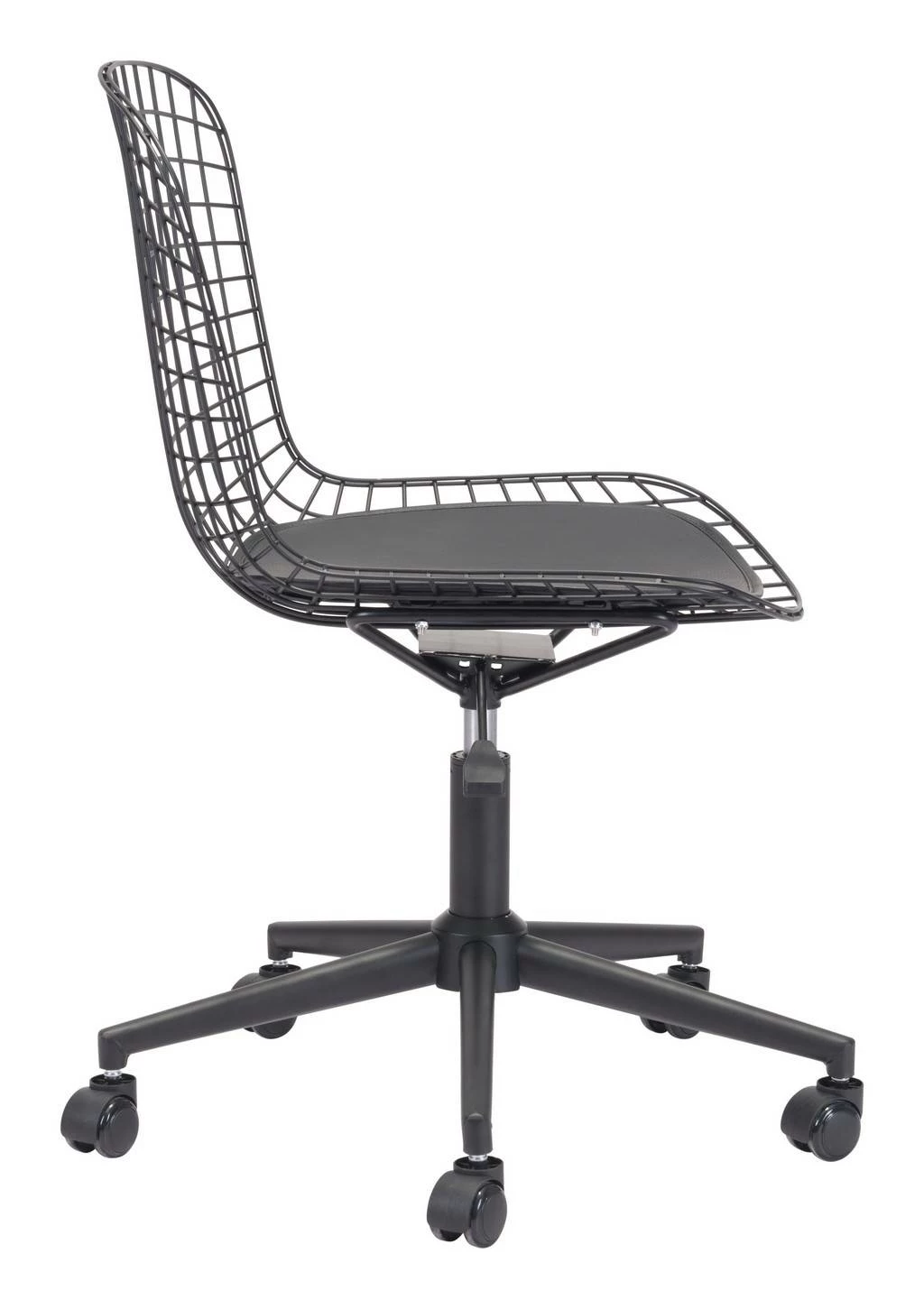 Wired for success. This modern office chair in matte black steel is designed to be flexible. The seat swivels and adjusts in height, while the sturdy casters move you from task to task. The seat cushion is in smooth faux leather and keeps you comfortable.